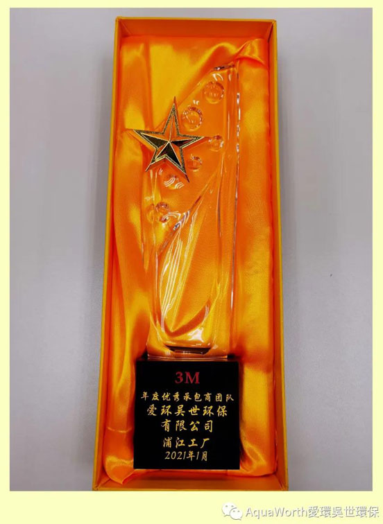 2021年3月19日,在3M公司舉行的優秀承包商表彰會上,3M公司有關領導親自授予了愛環吳世(蘇州)環保股份有限公司“年度優秀承包商團隊”獎牌和獎杯。